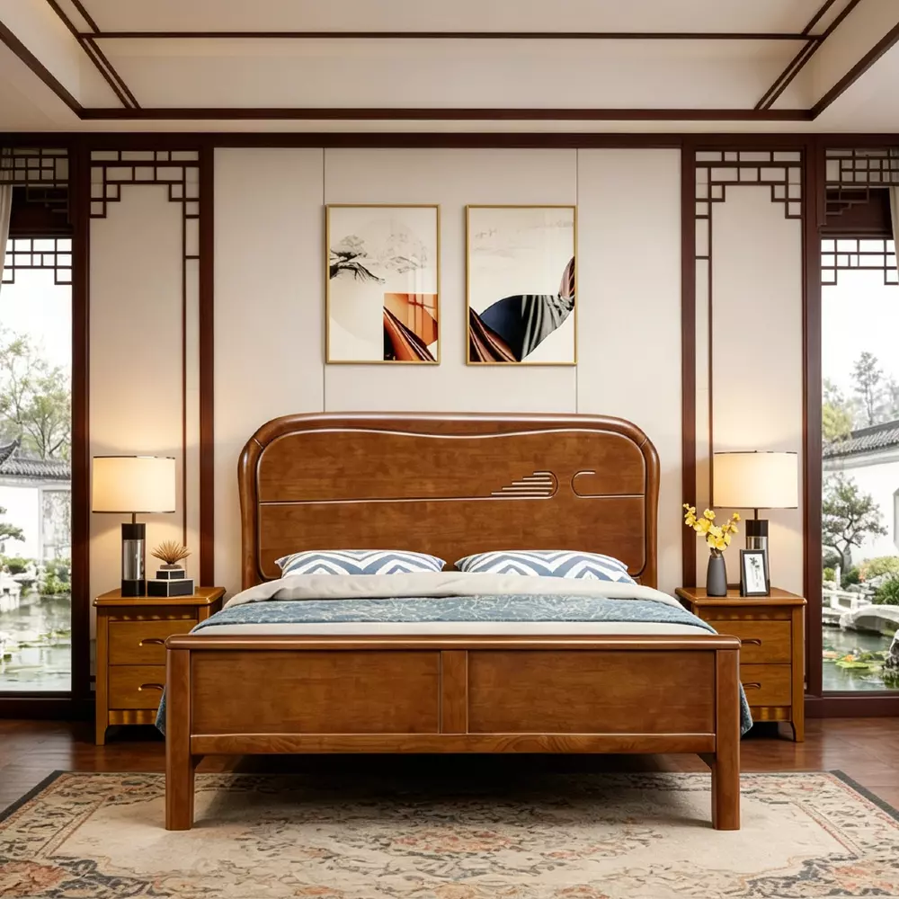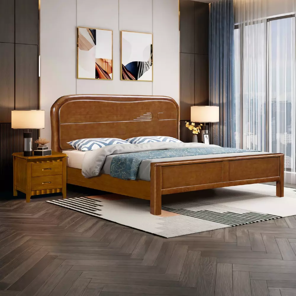 Letto da camera da letto in legno massello moderno, semplice e durevole in legno di gomma, mobili all'ingrosso con assemblaggio KD