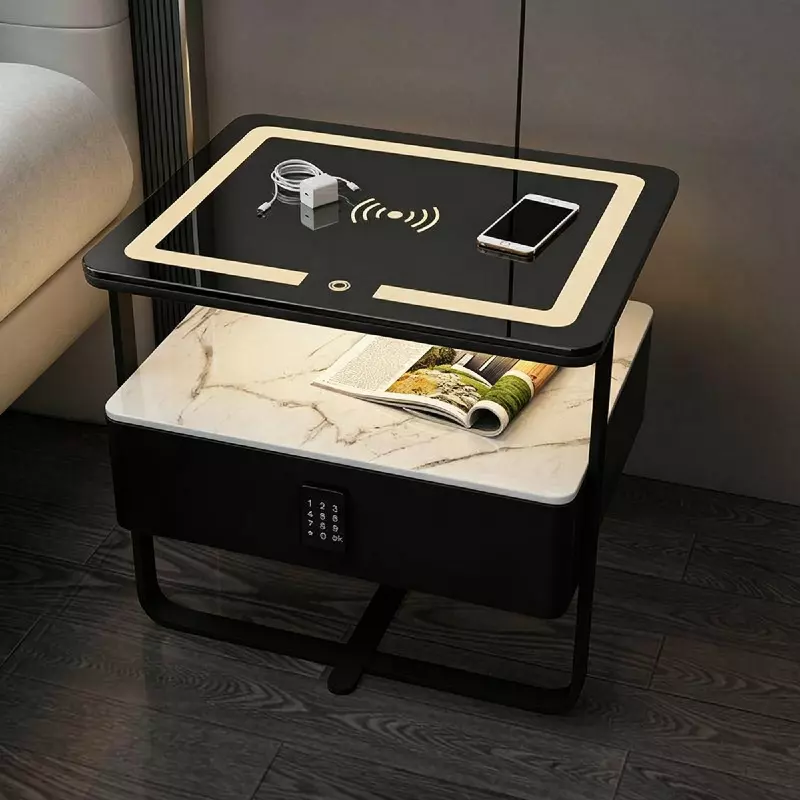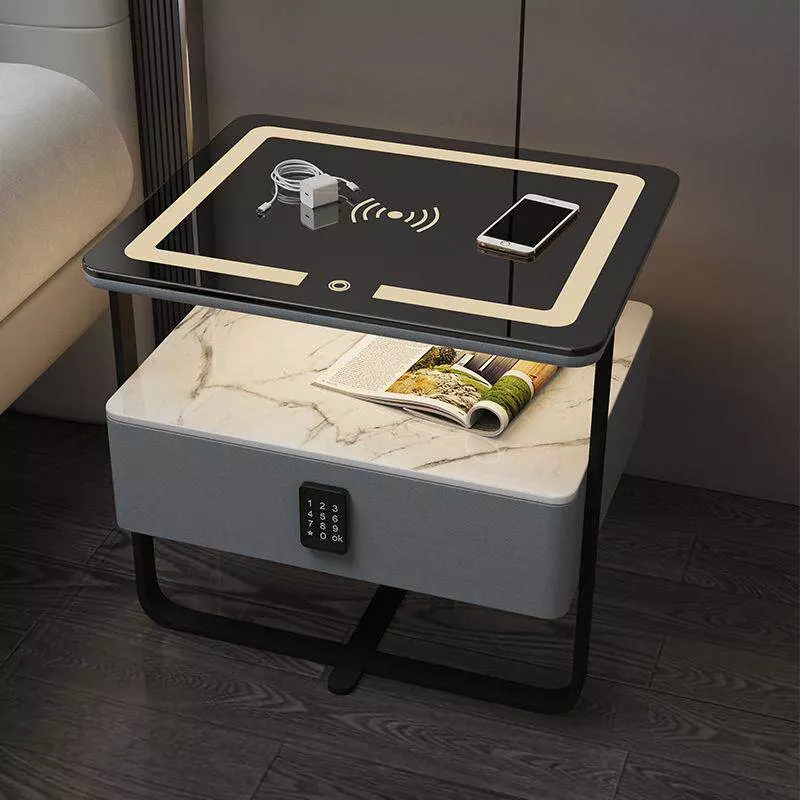 Luksus otwarty-Inteligentna szafkanocna do przechowywania z bezprzewodowym ładowaniem & Blokada hasła