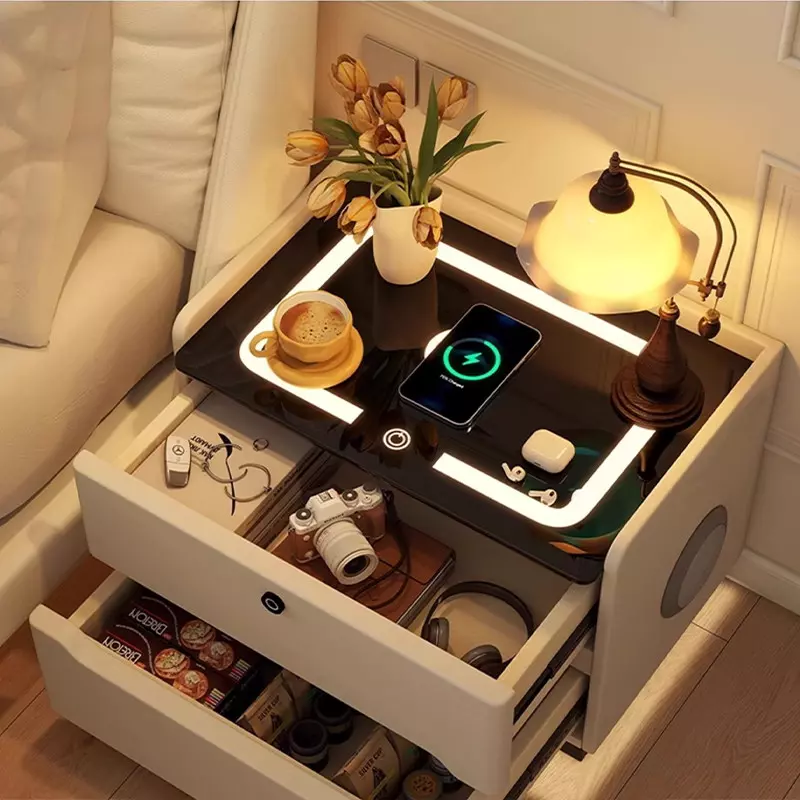 1. 3-in-1 Smart Design: Integrates wireless charging, Bluetooth speaker, and secure storage.